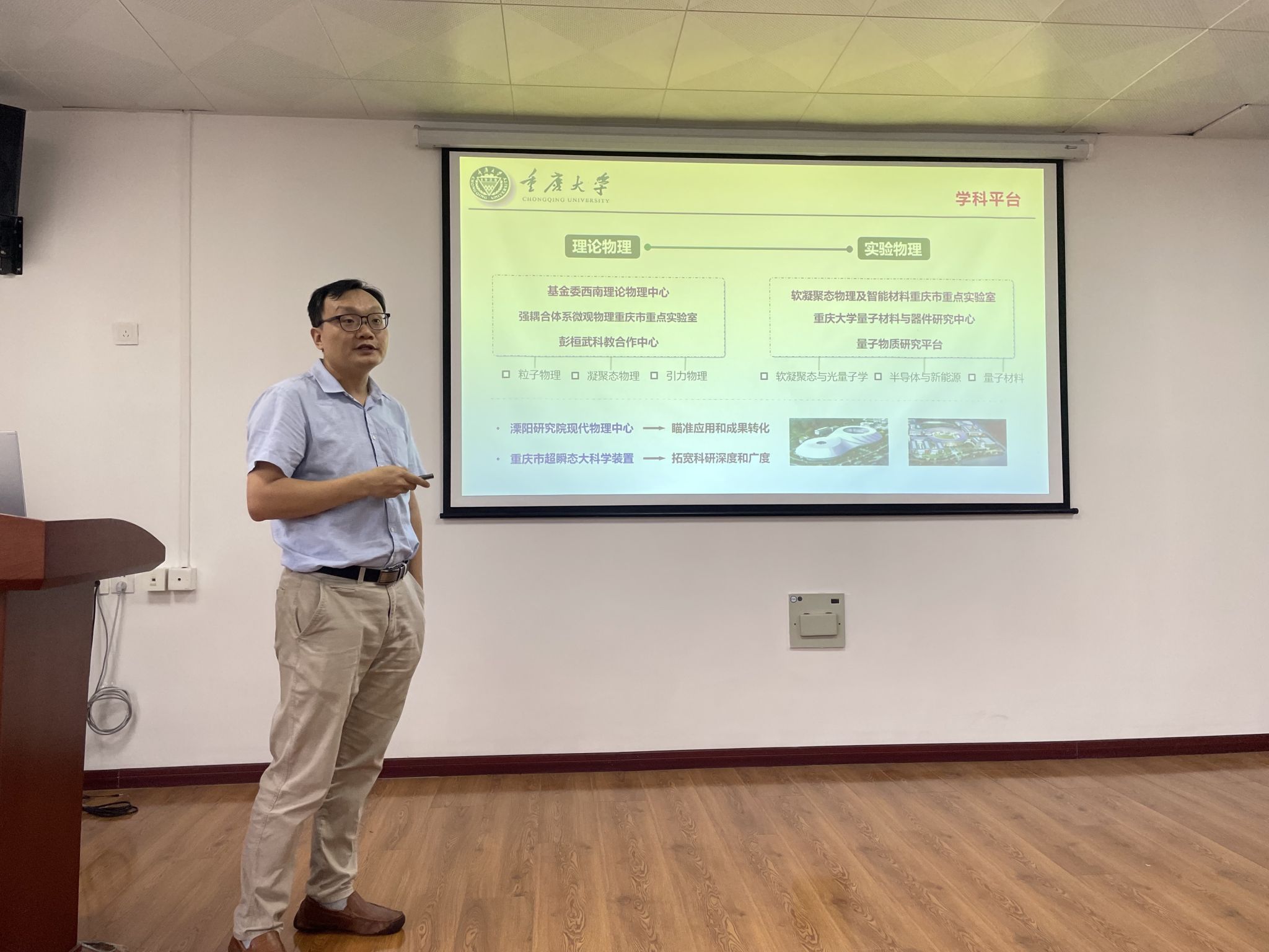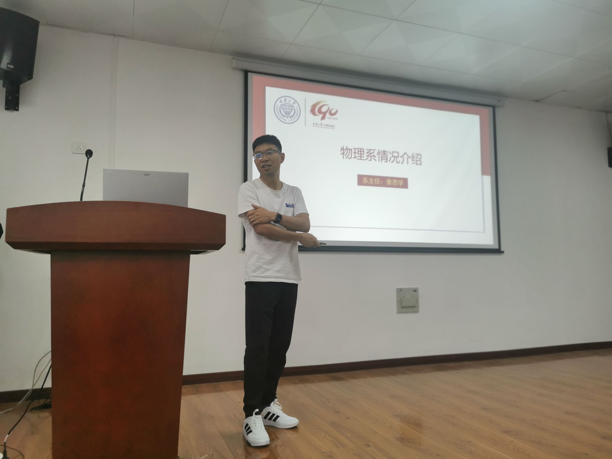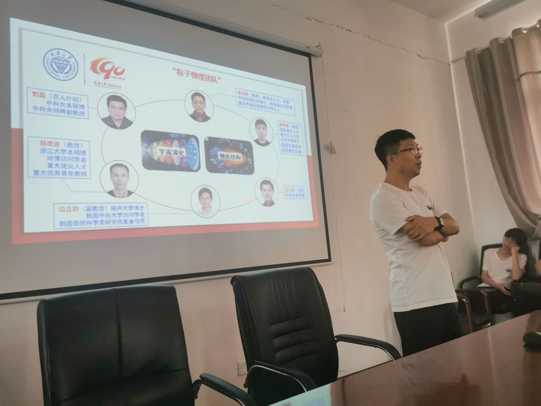 暑期夏令营等活动进行了相关介绍;秦思学教授对物理系的师资和研究情况进行了详细的介绍,并对高能物理和粒子物理研究团队进行了详细的讲述;李昕教授对色花堂