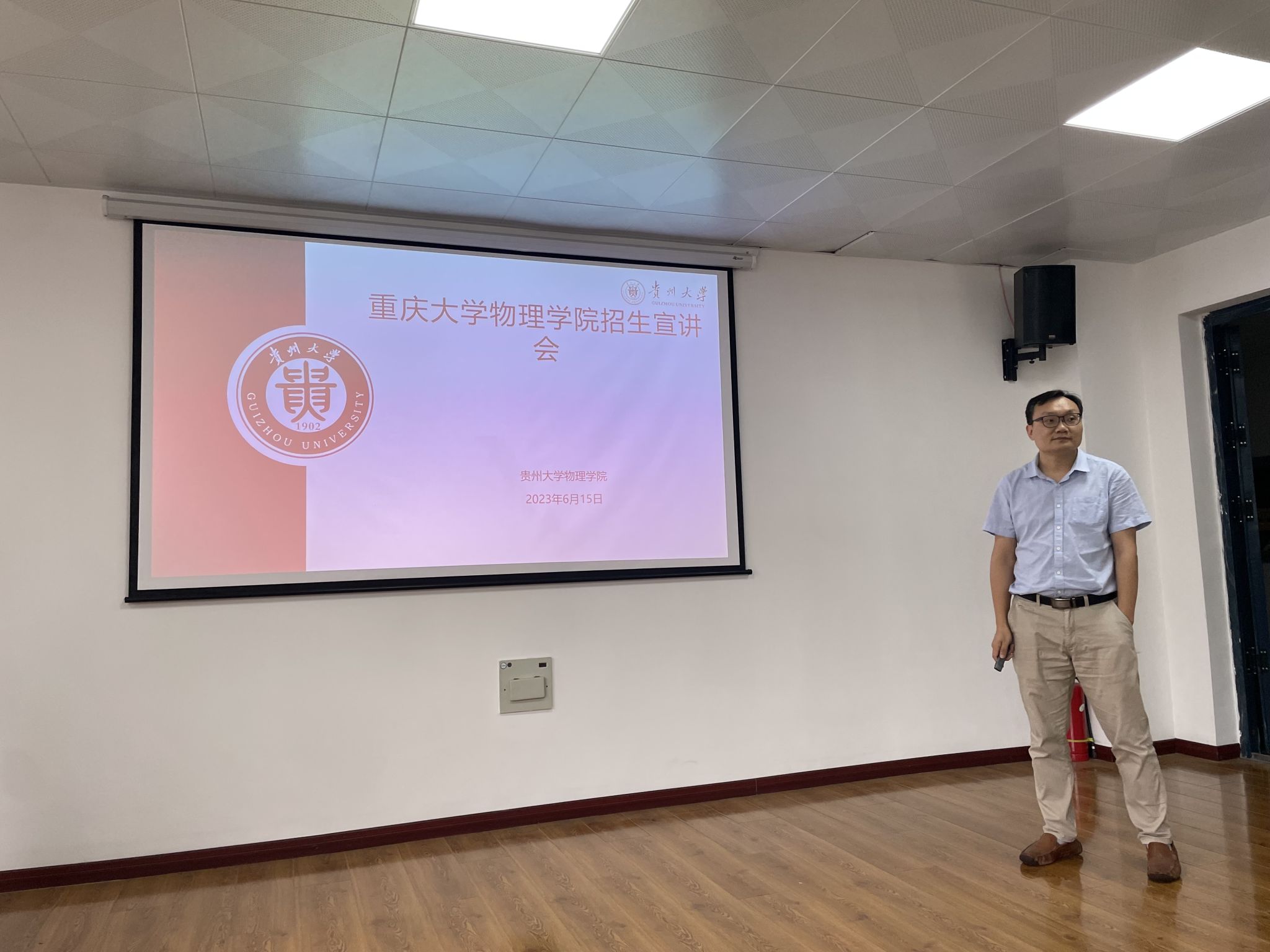 主管研究生教育的副院长胡自翔教授,物理系主任秦思学教授和西南理论物理中心方向负责人李昕教授赴贵州大学和贵州民族大学进行了两场招生宣传。宣讲会由贵州大学色花堂